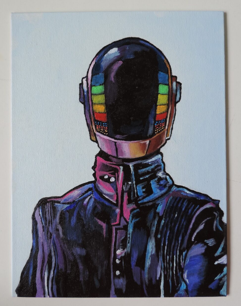 Historia: Parte del soundtrack de mi vida es la música de Daft Punk por lo que una pintura de los mejores DJs de la historia es esencial dentro de mi galería.